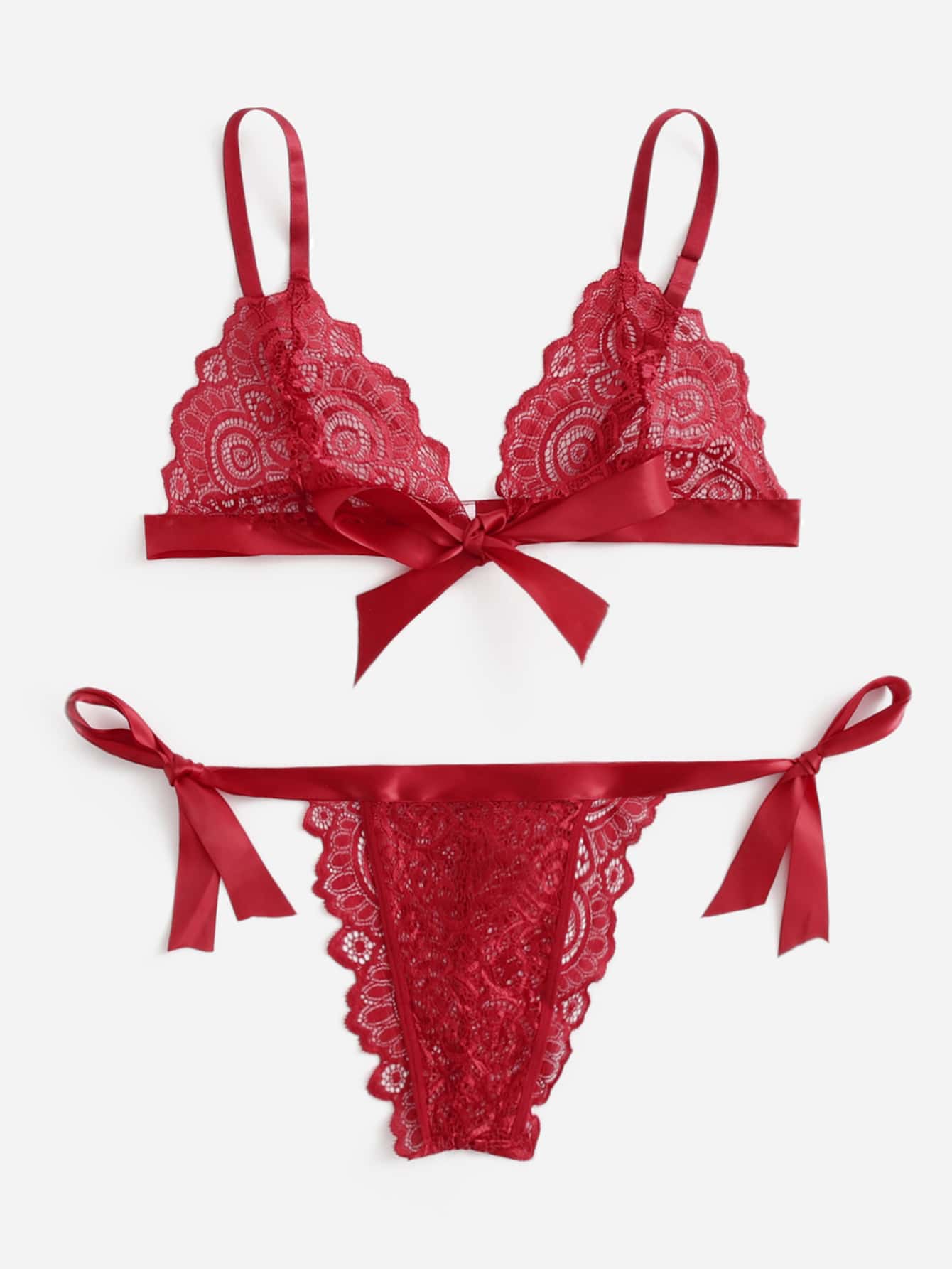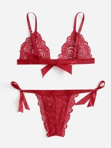 Set de lencería con encaje con cordón lateral