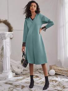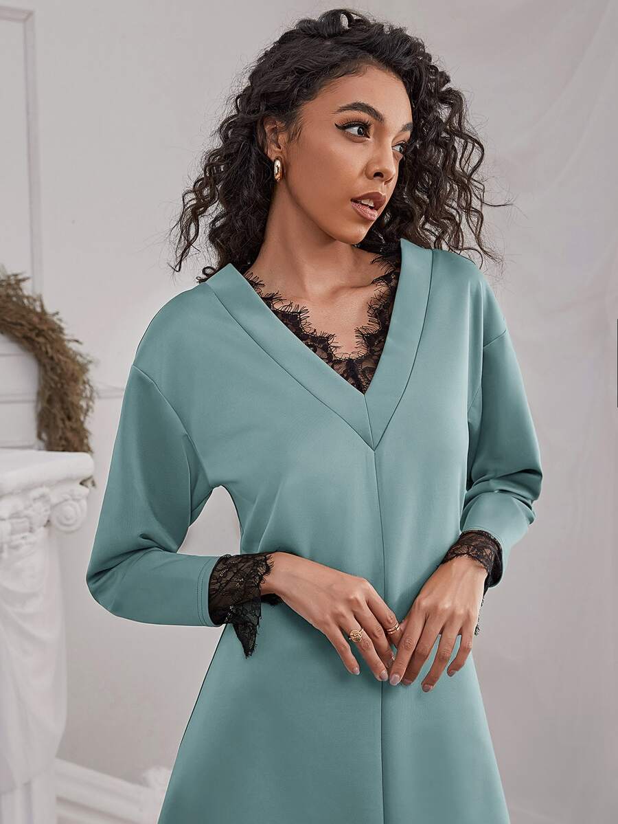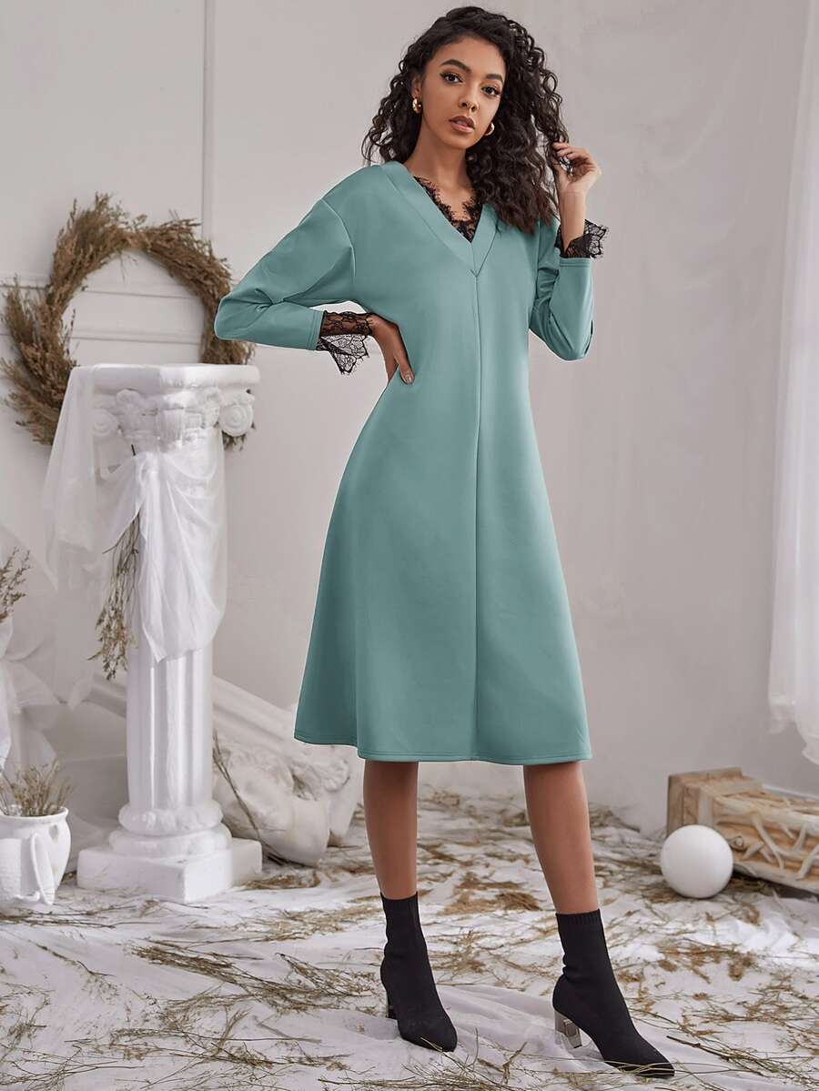 Vestido de hombros caídos ribete con encaje