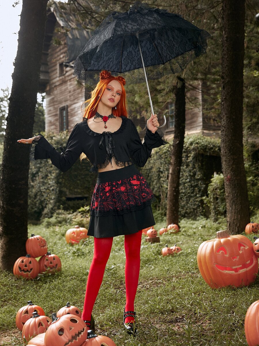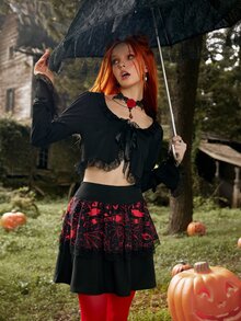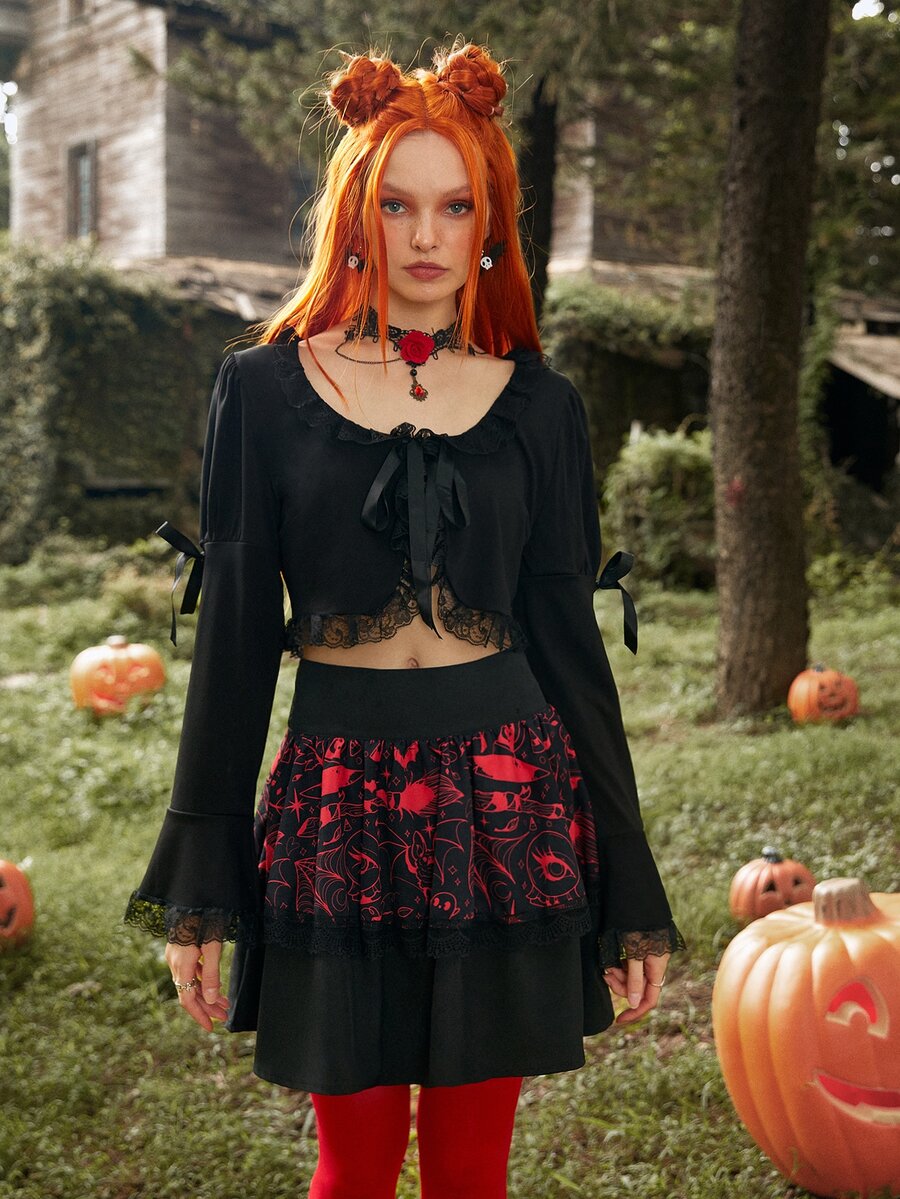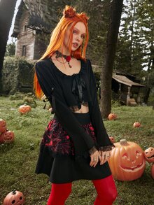 Top ribete con encaje con cordón delantero