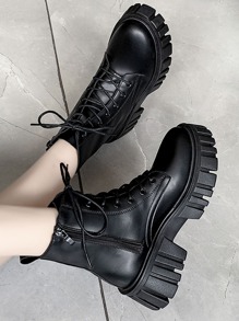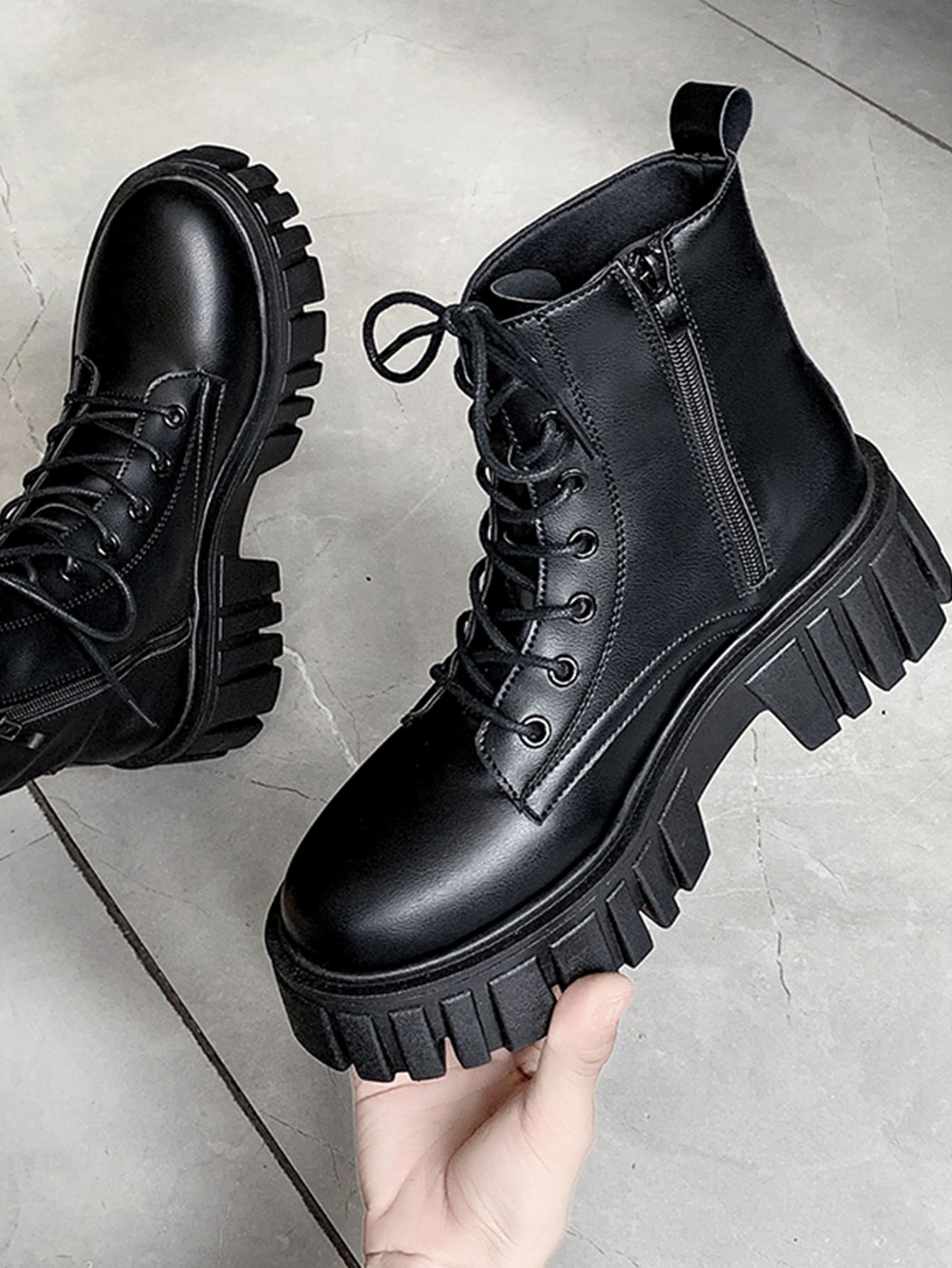 Botas de combate con cordón delantero plataforma con tacón grueso