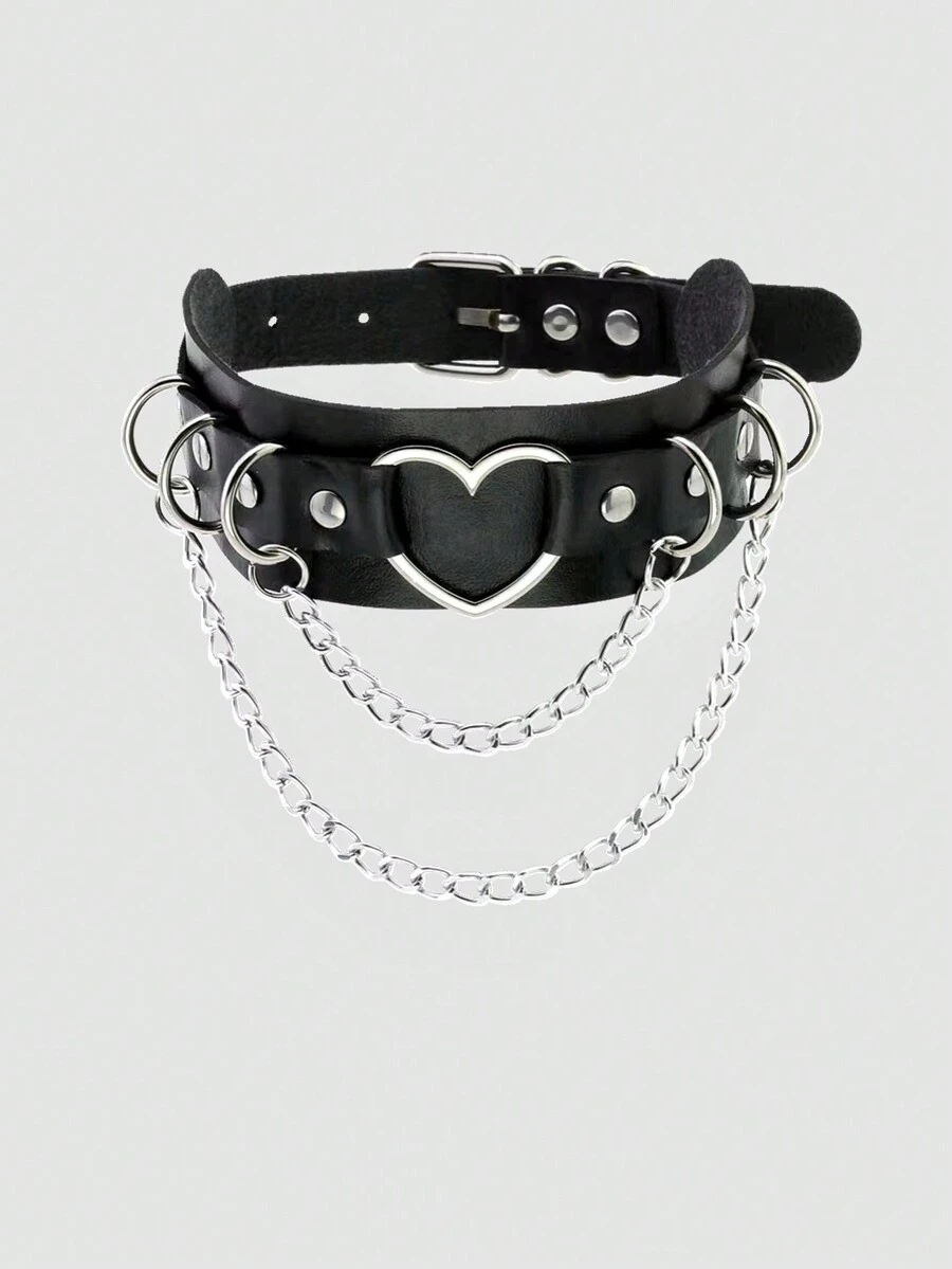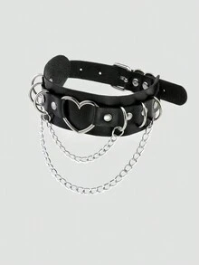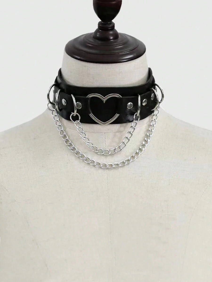 Grunge Punk para mujeres con corazón con cadena decorado cuello , negro