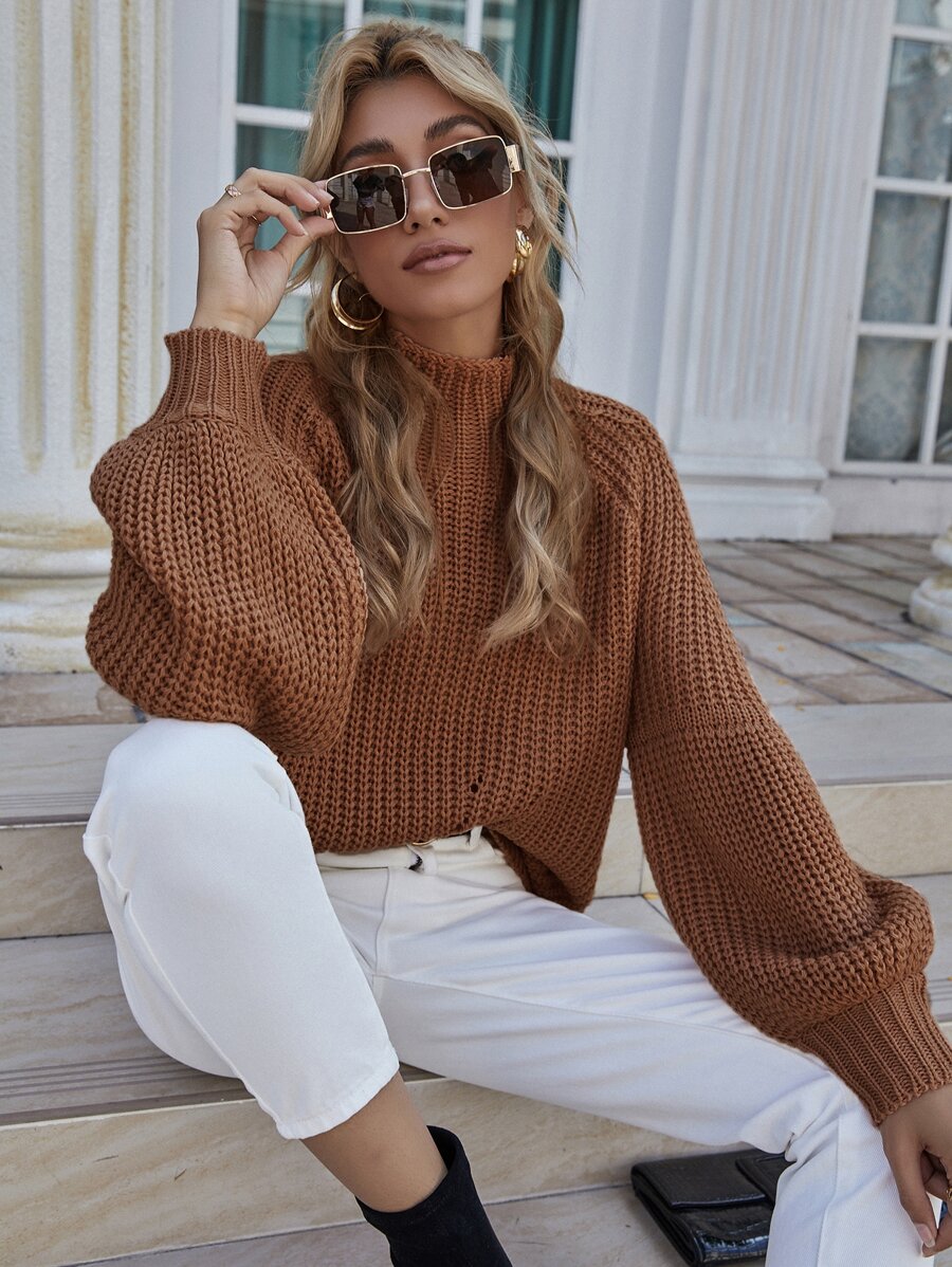 Suéter holgado de punto grueso con mangas farol para otoño e invierno