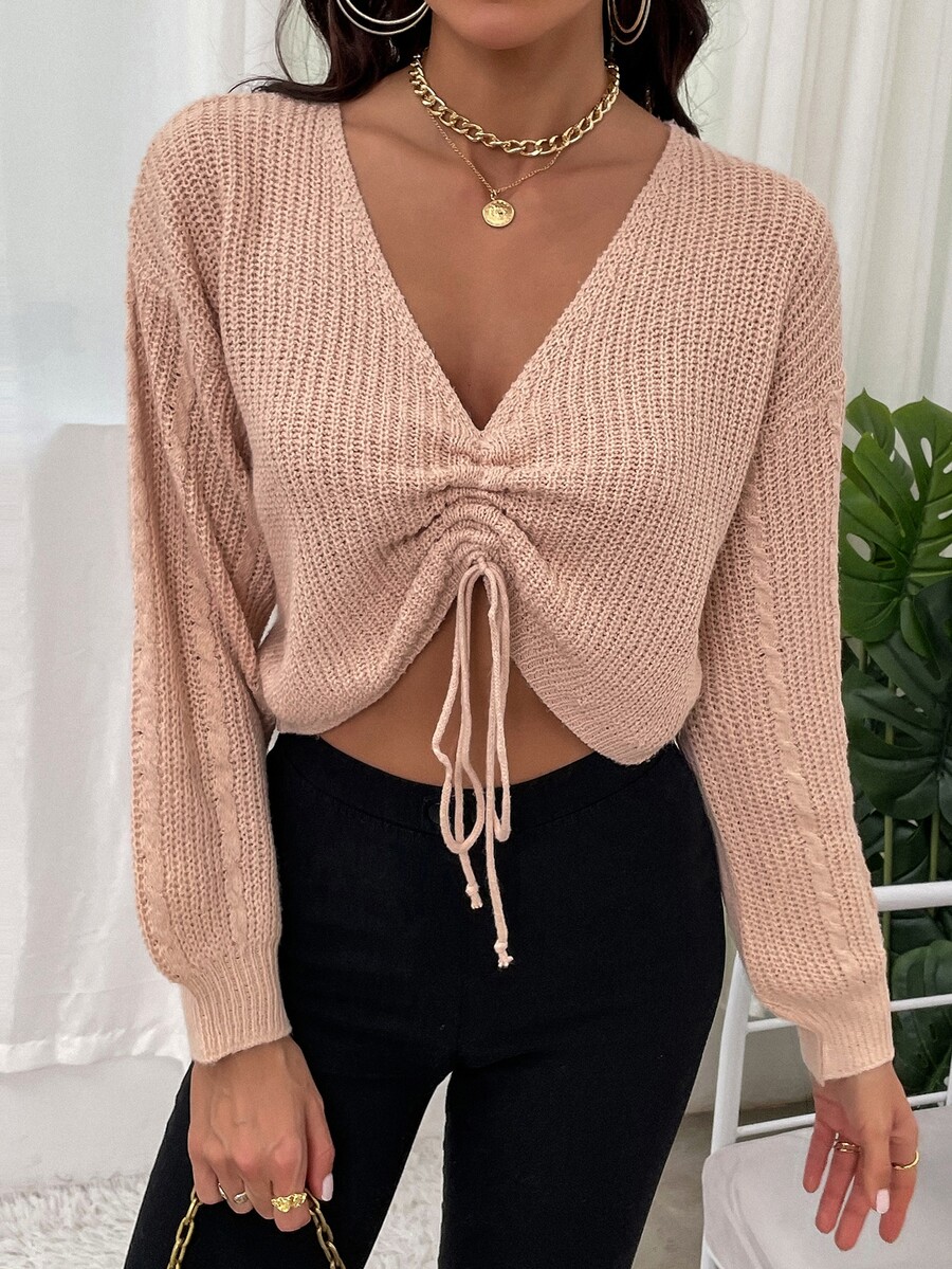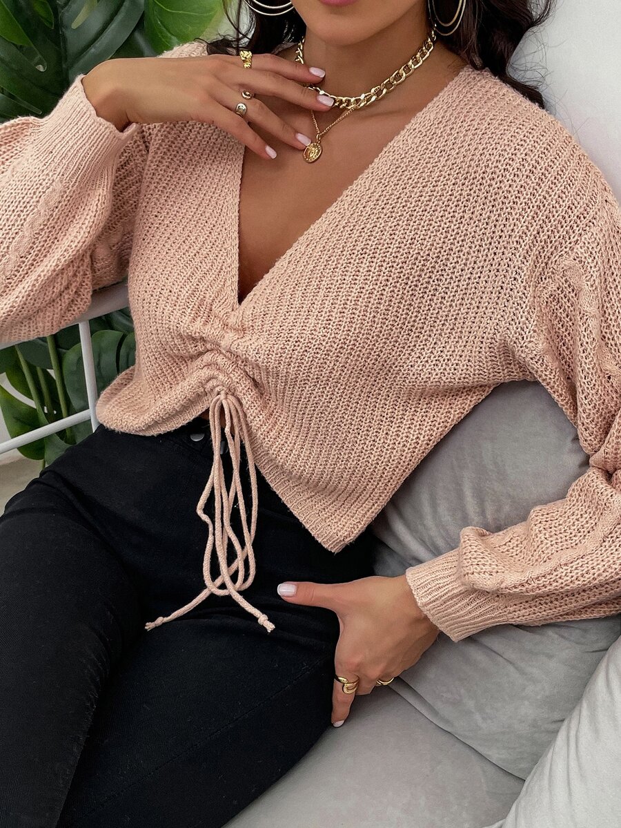 Jersey de manga farol con cordón fruncido delantero