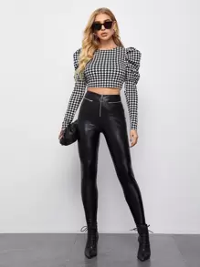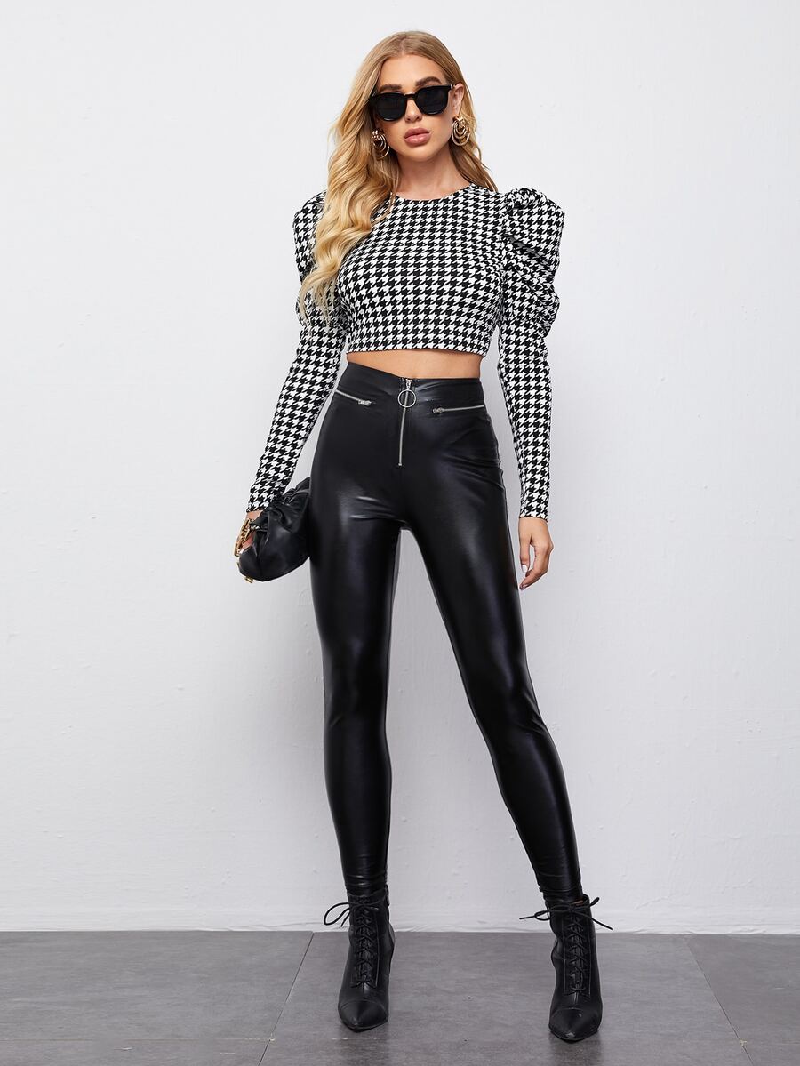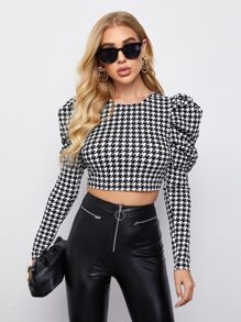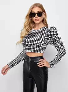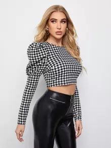 Top corto de pata de gallo de manga de pierna de cordero