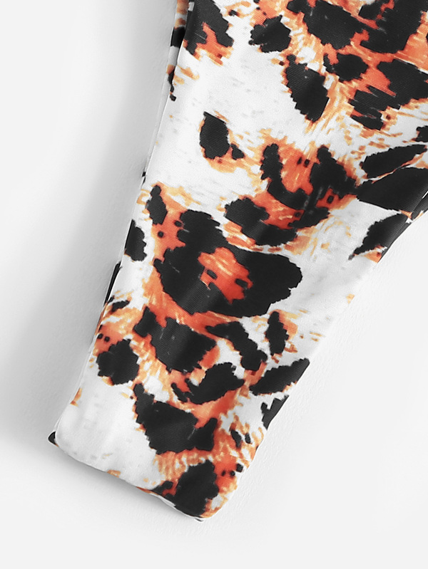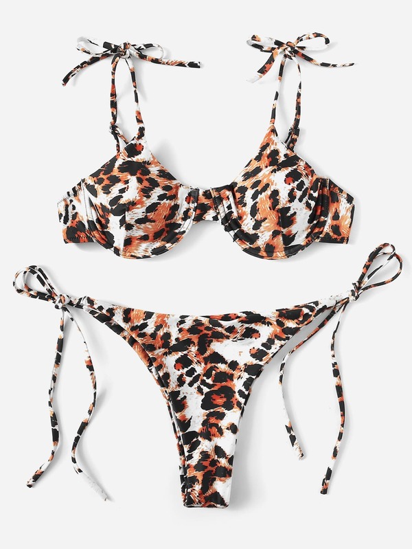 Bikini de leopardo con aros y conjunto de bikini de lazo lateral