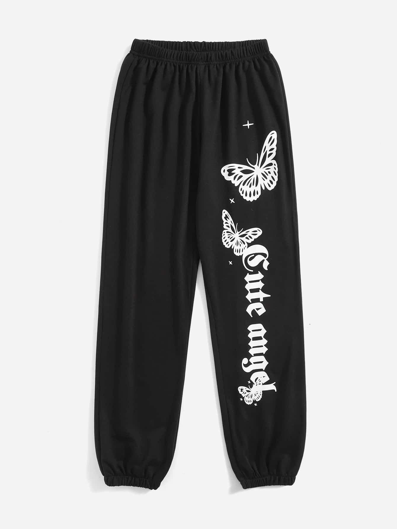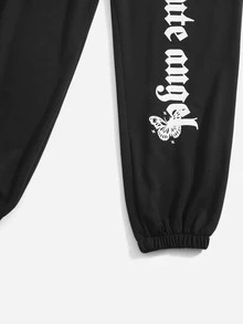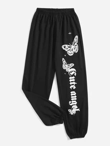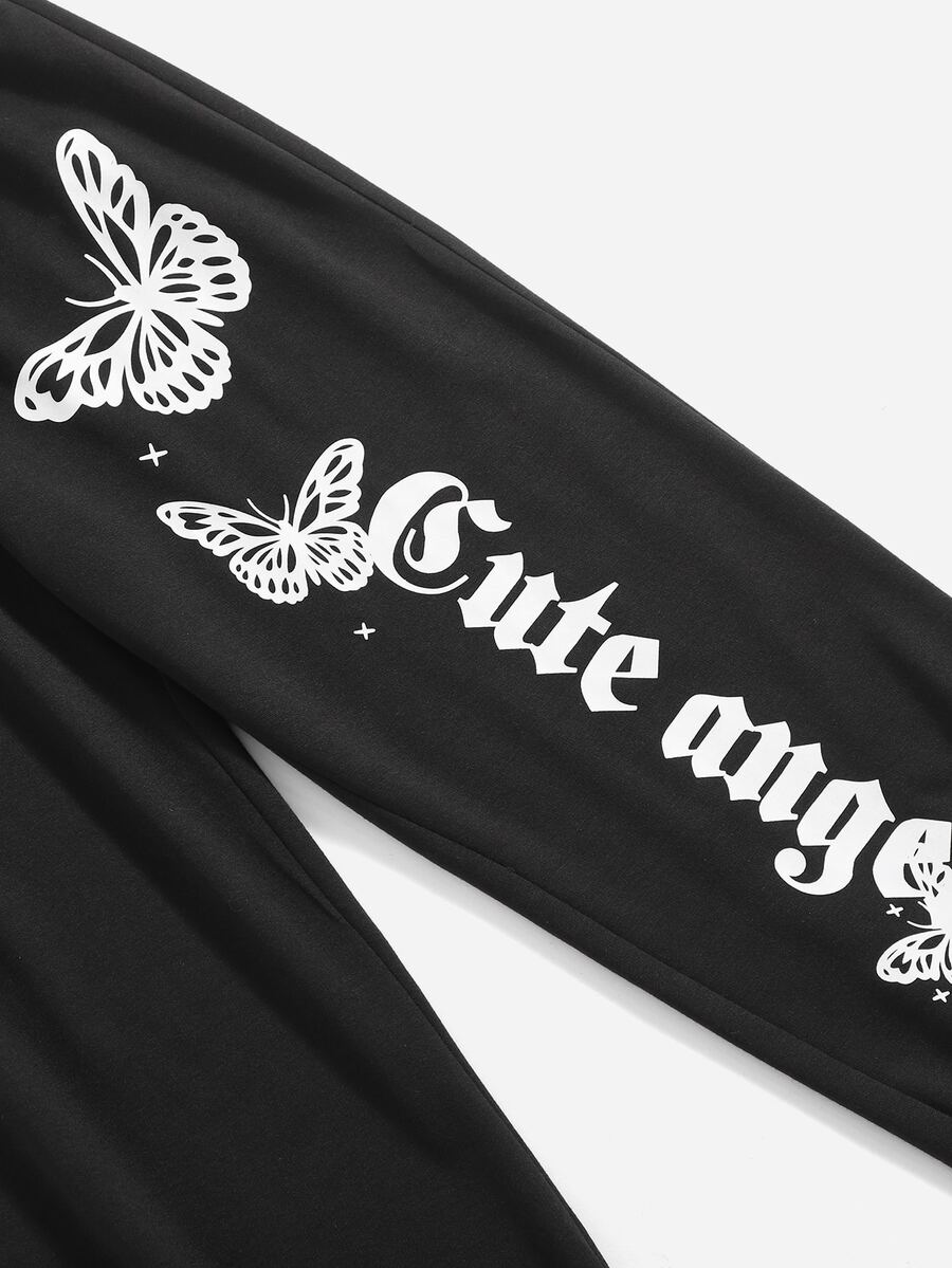 Pantalones deportivos con letra con estampado de mariposa