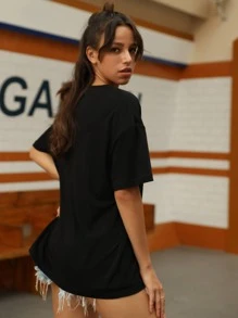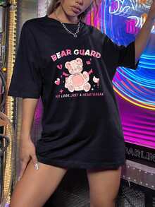 Camiseta con letra con estampado de oso de dibujos animados