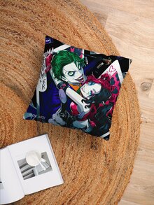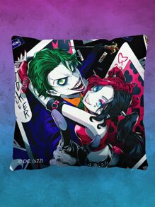 Harley Quinn | ROMWE Funda de cojín sin relleno con diseño de letra con estampado de figura de dibujos animados