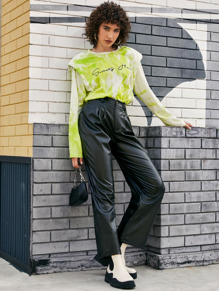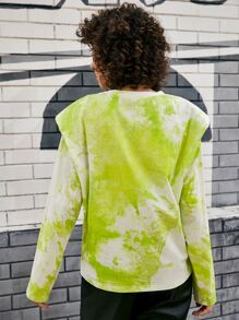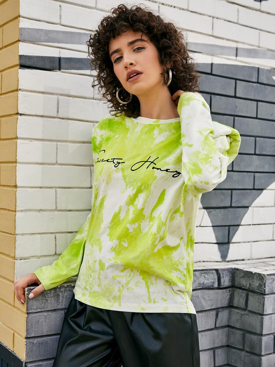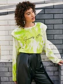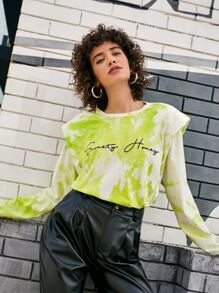 Camiseta con bordado de letra con hombrera de tie dye