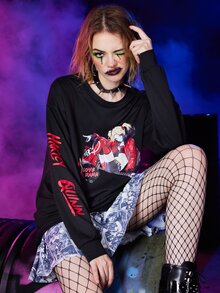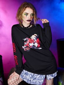 Harley Quinn | ROMWE Sudadera con letra con estampado de figura