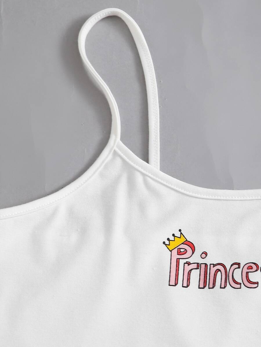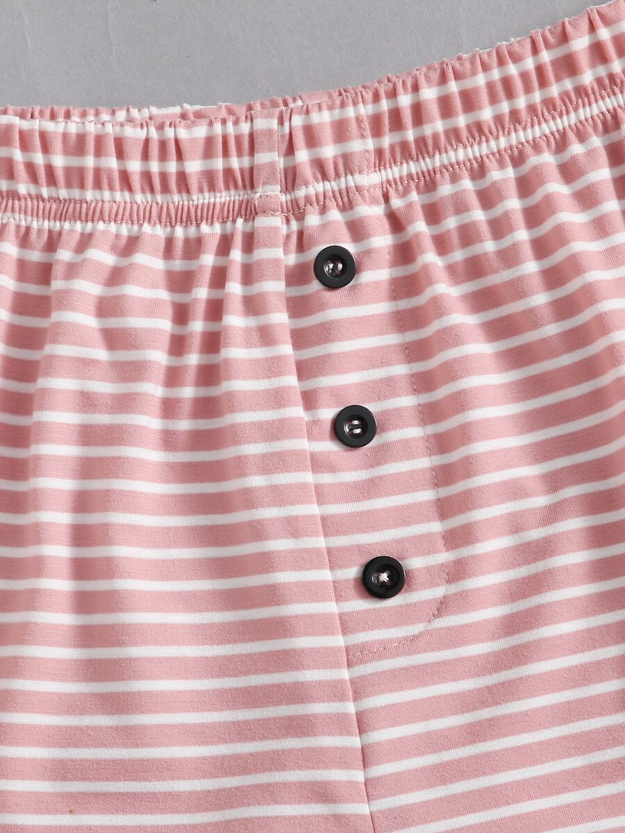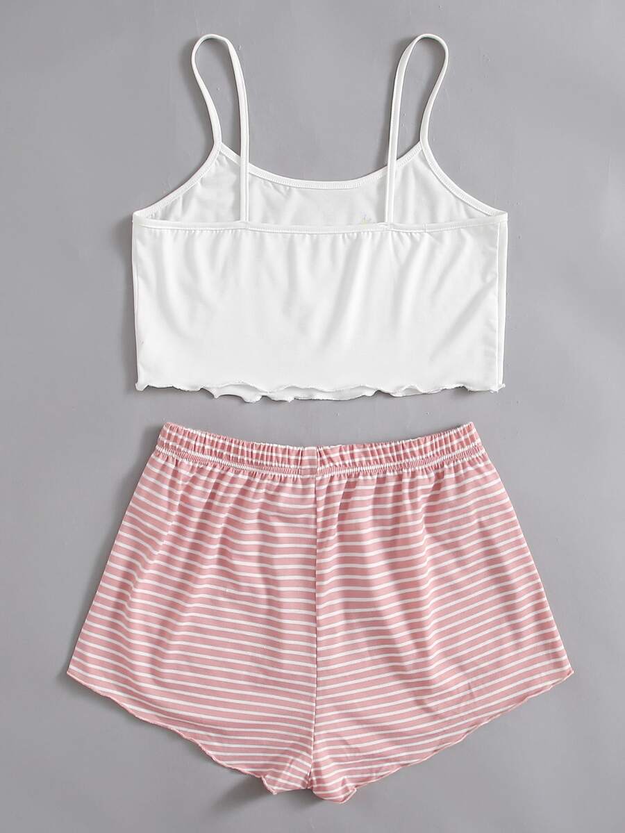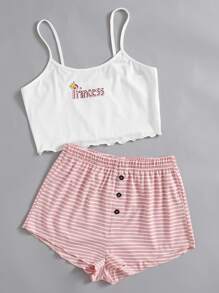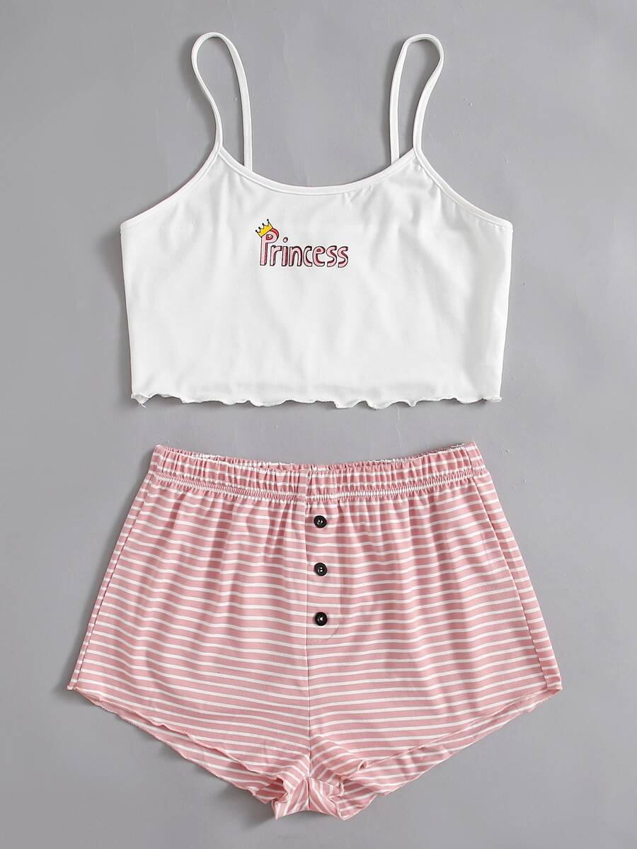 Conjunto De Pijama Con Top De Tirantes Y Pantalones Cortos A Rayas Con Graficos De Letra