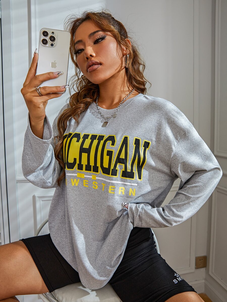 Camiseta de manga larga con gráfico occidental de Michigan para mujer