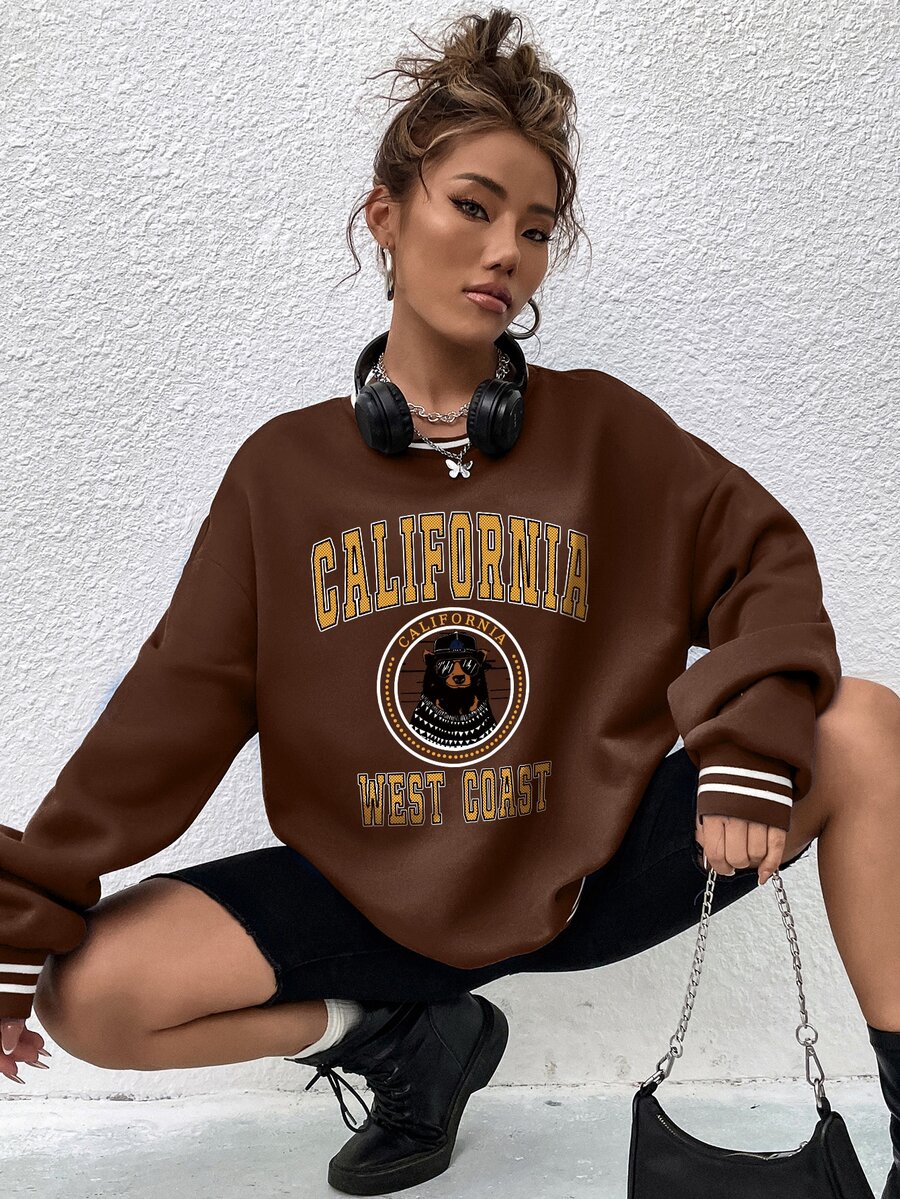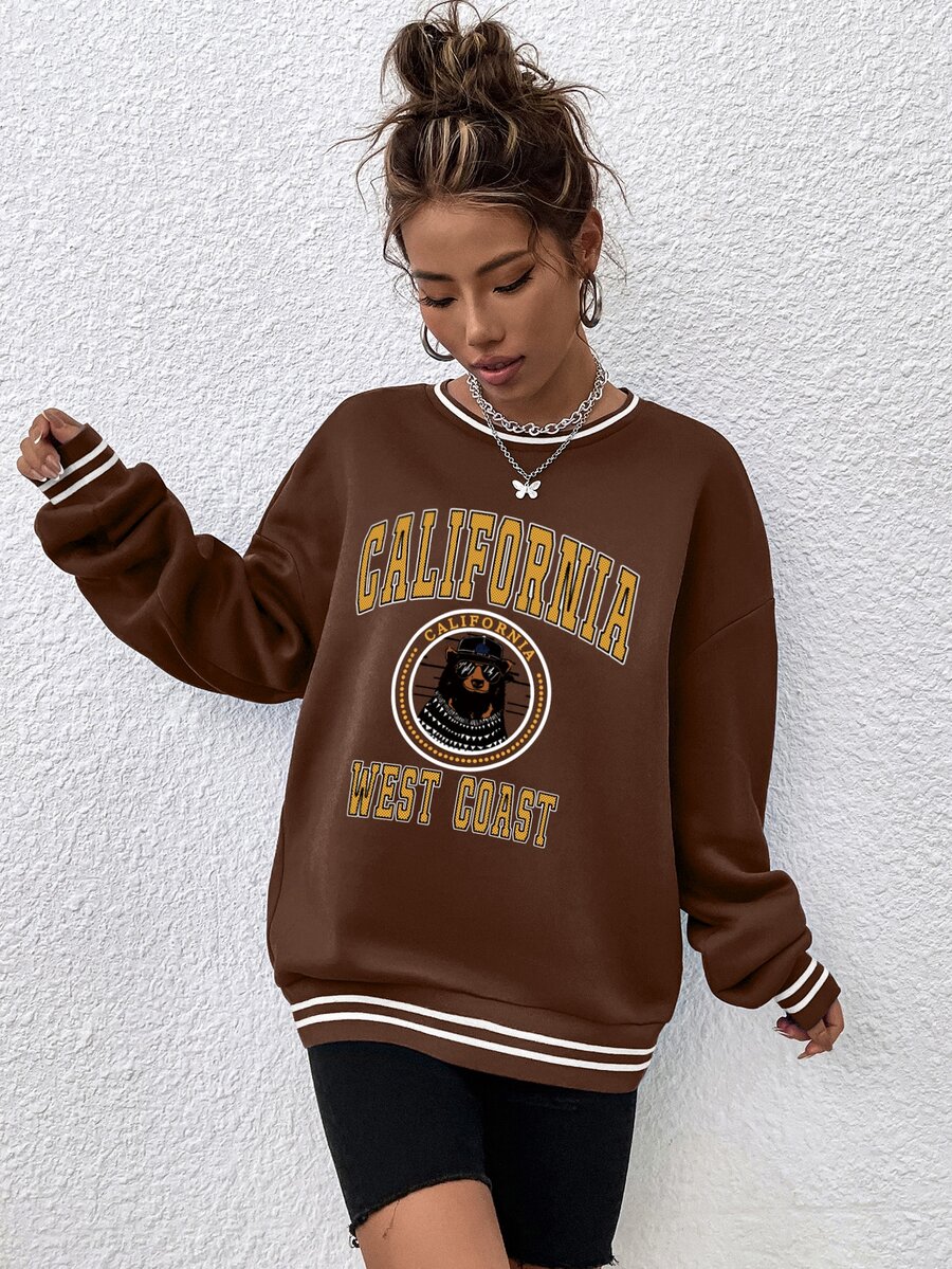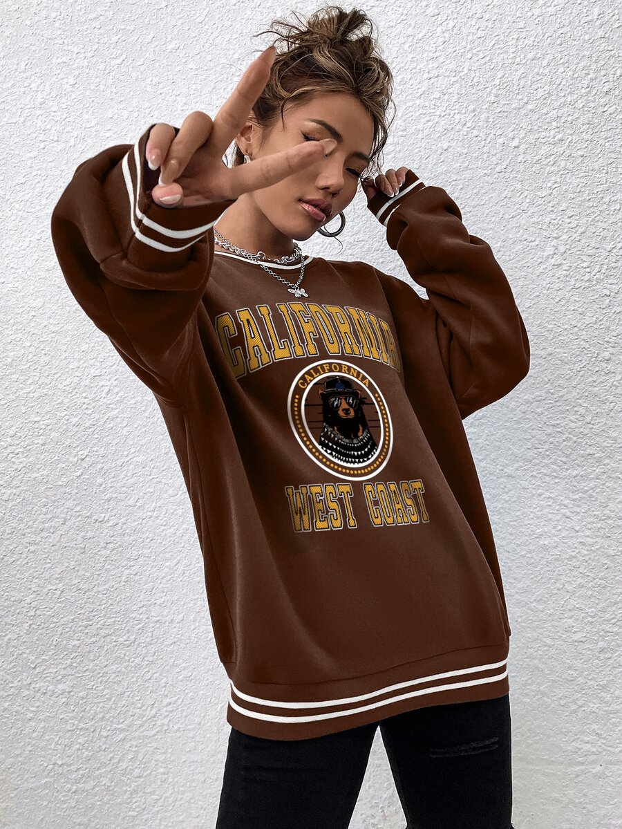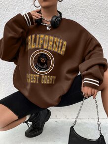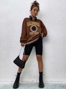 Sudadera con estampado de letra ribete de rayas de hombros caídos