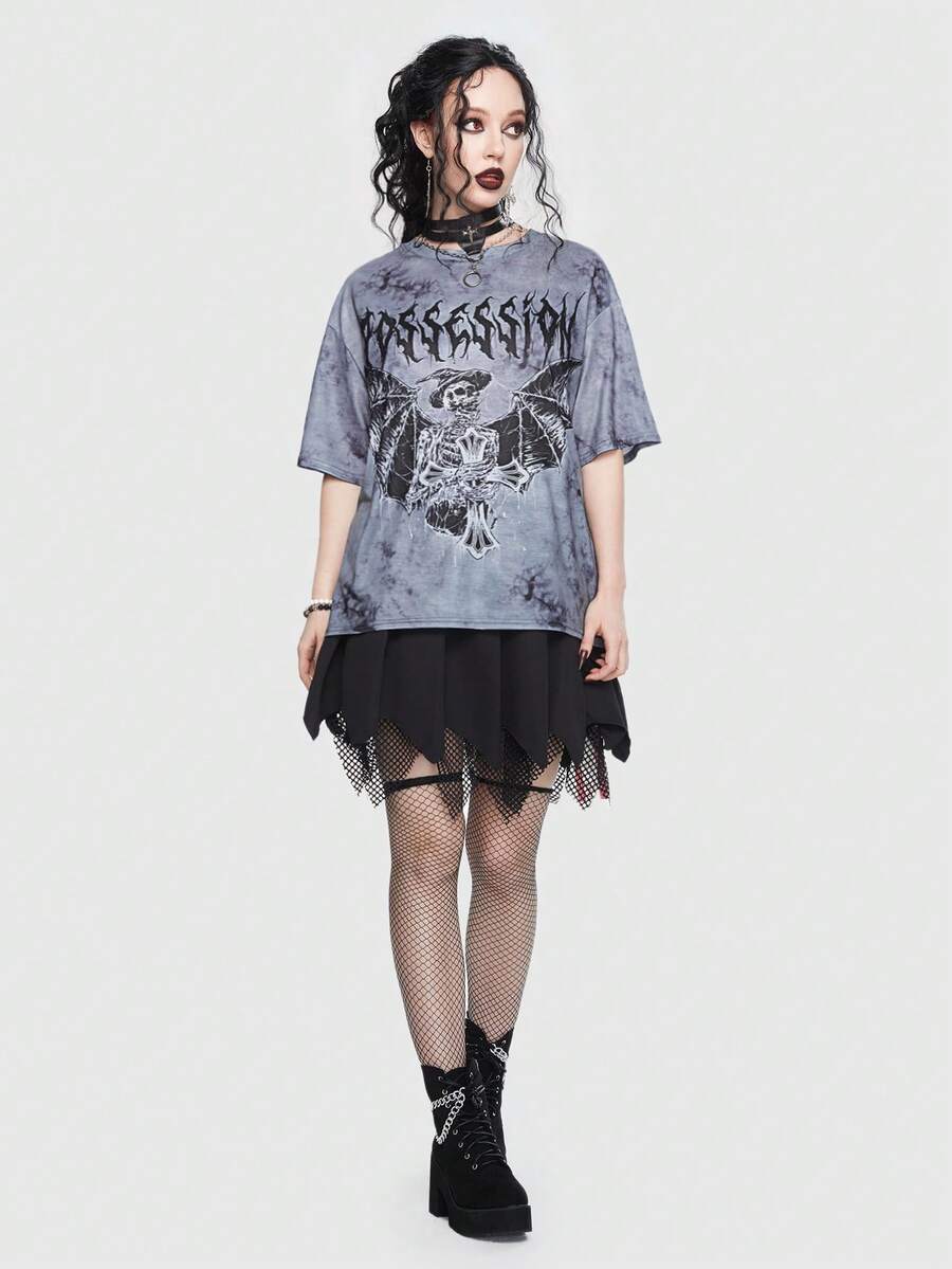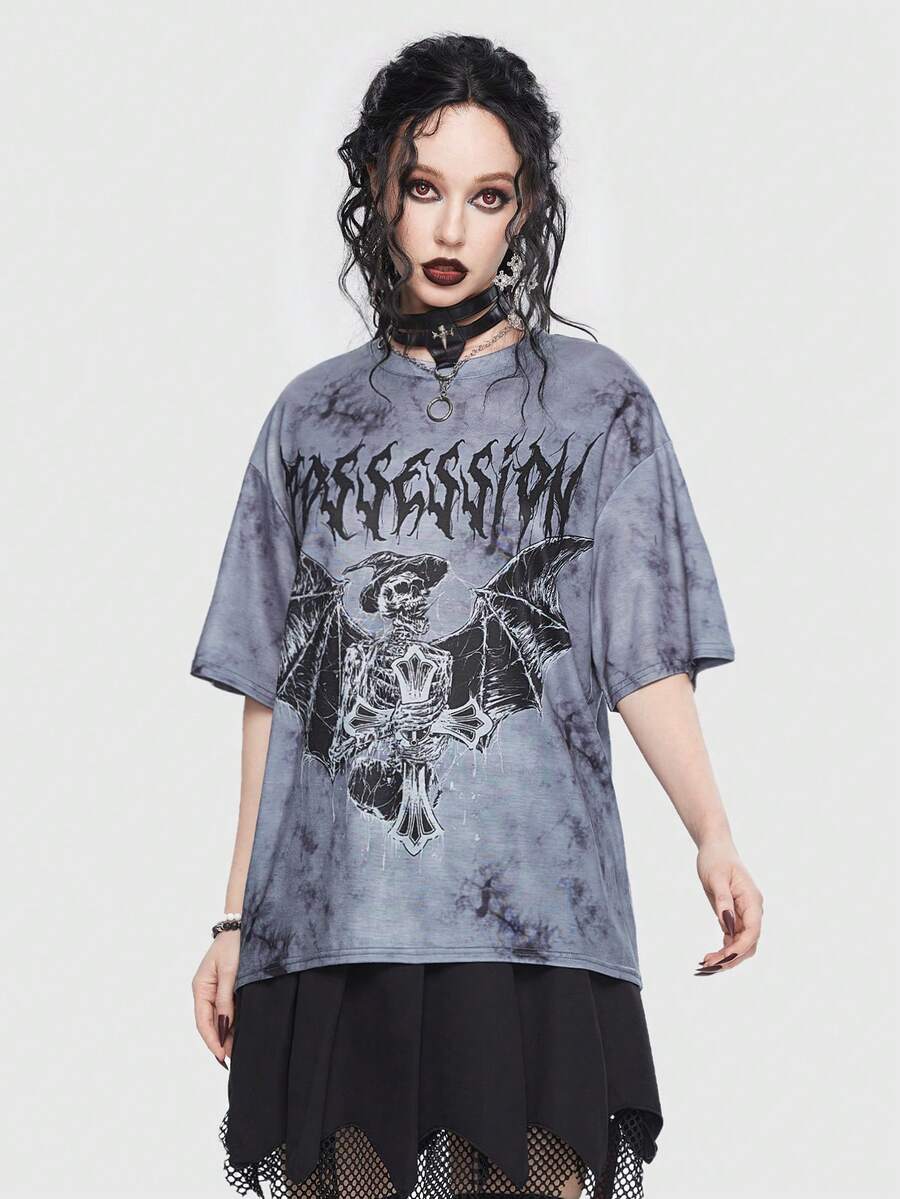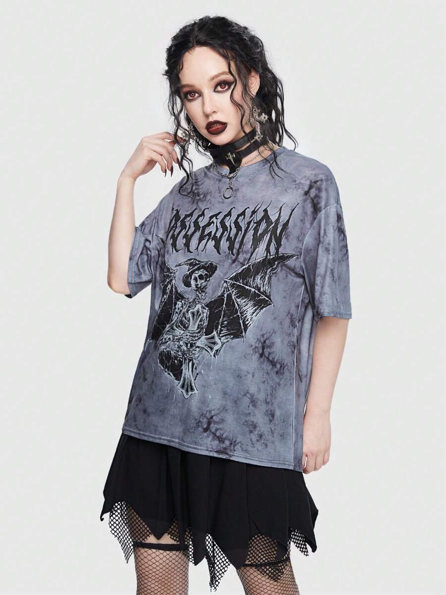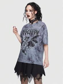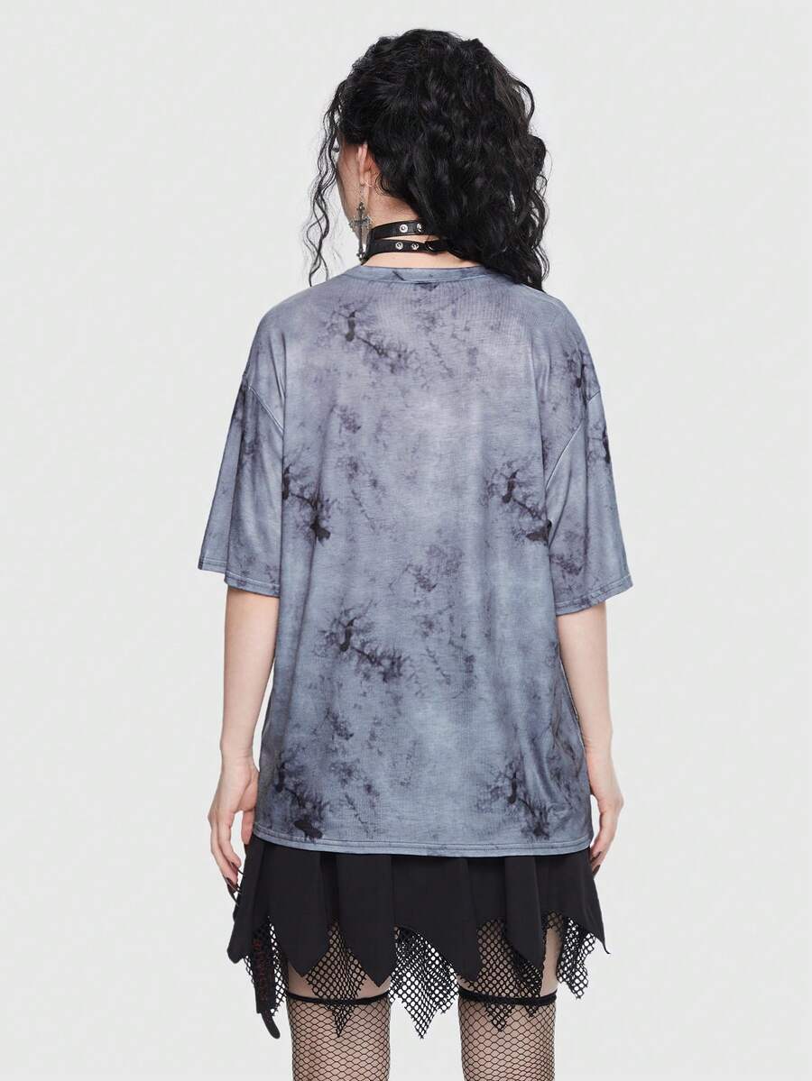 Goth Camiseta de hombros caídos con estampado de letra de tie dye