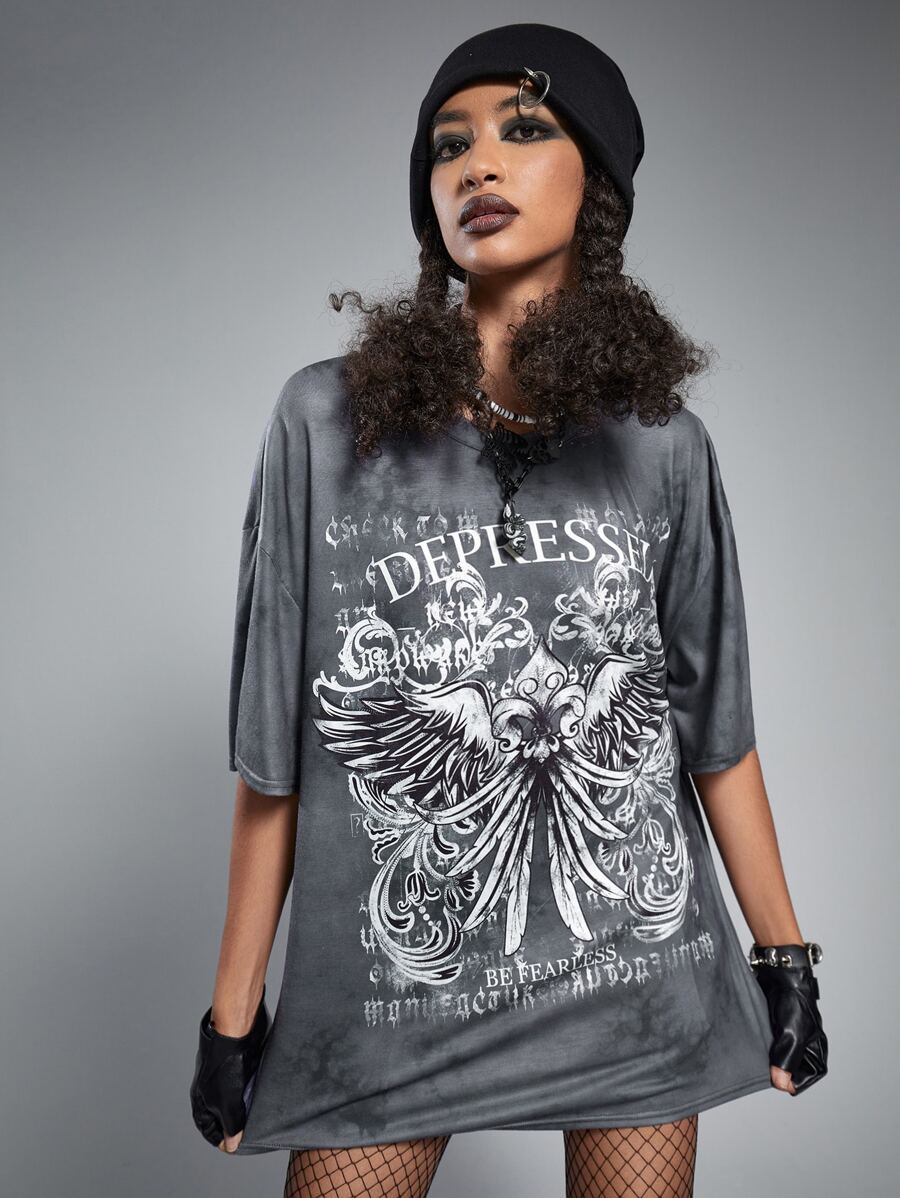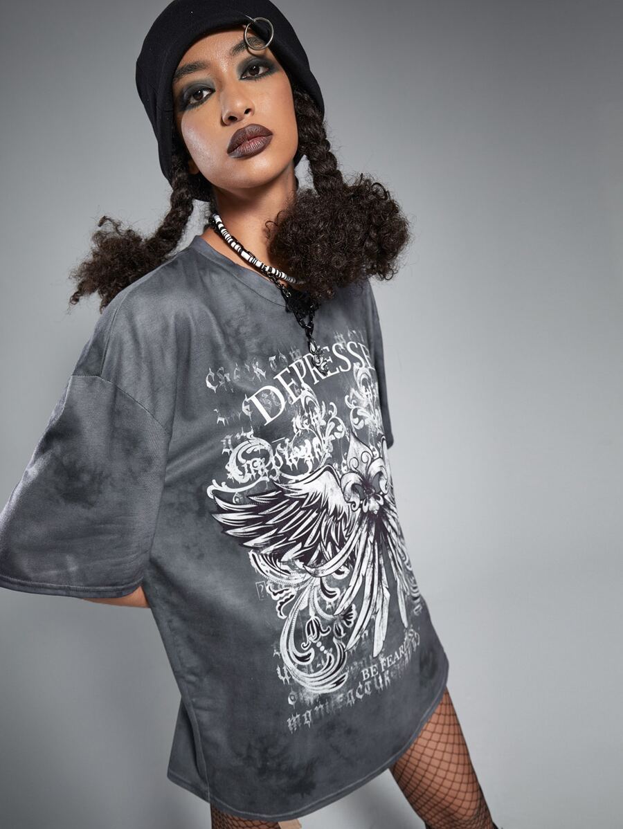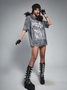 Grunge Punk Camiseta amplia con estampado de letra de tie dye