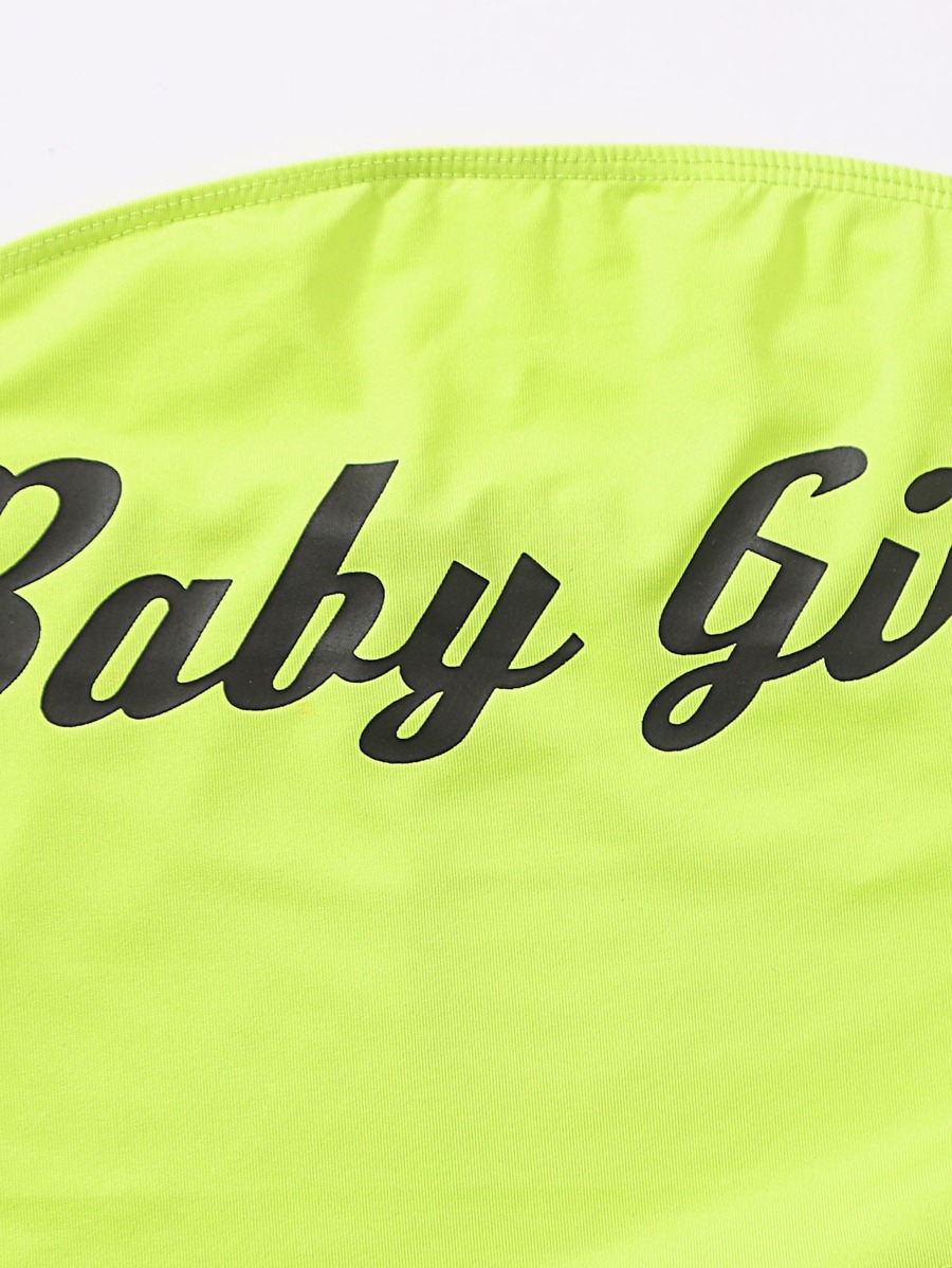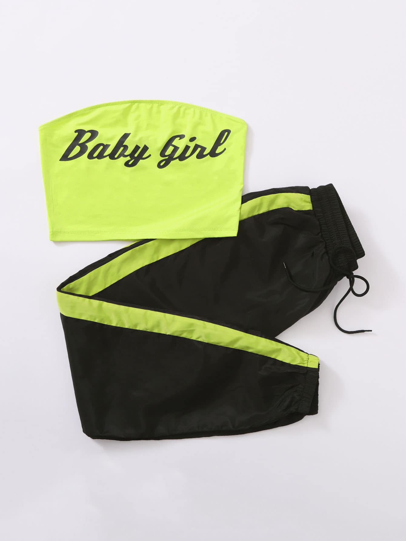 Conjunto Top bandeau con estampado de letra & Pantalones rompevientos con costura lateral en contraste