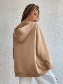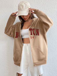 Capucha con estampado de letra con cremallera de hombros caídos con cordón con forro térmico