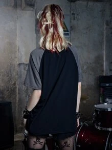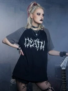 Grunge Punk Camisetas de Mujer Color combinado Letras Casual