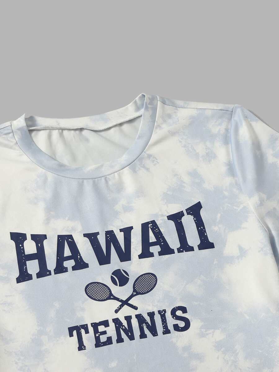 Conjunto de pijama con letra con estampado de tenis de tie dye unido en contraste