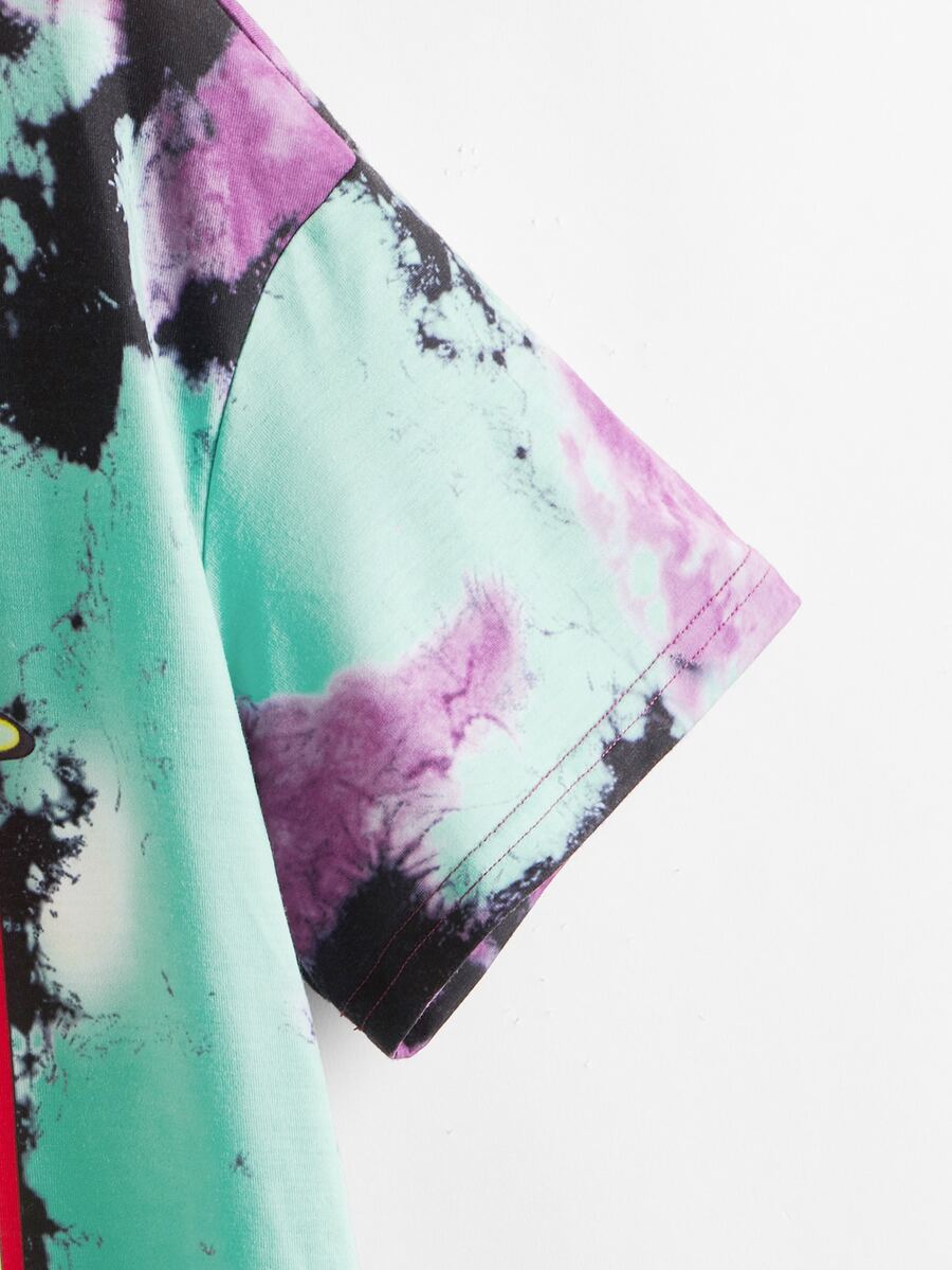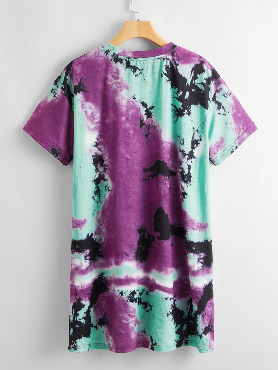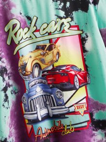Vestido estilo camiseta de tie dye con estampado de letra y coche