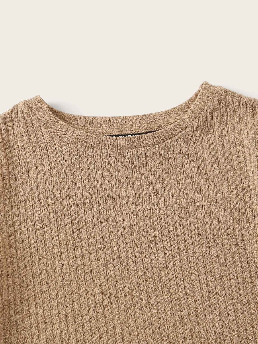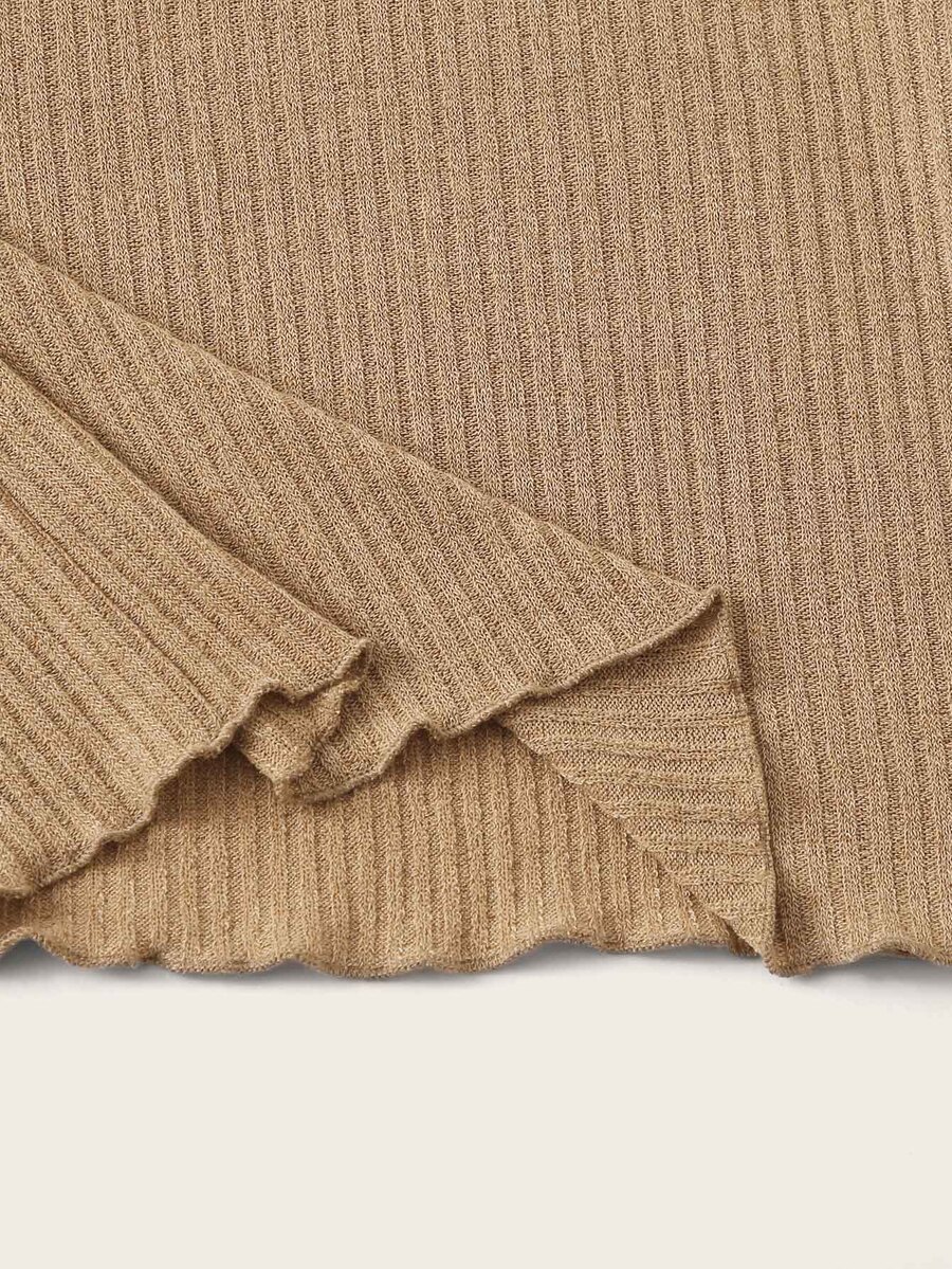 Camiseta corta tejida de canalé ribete en forma de lechuga