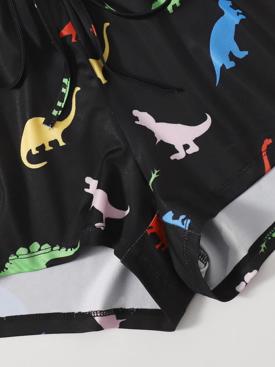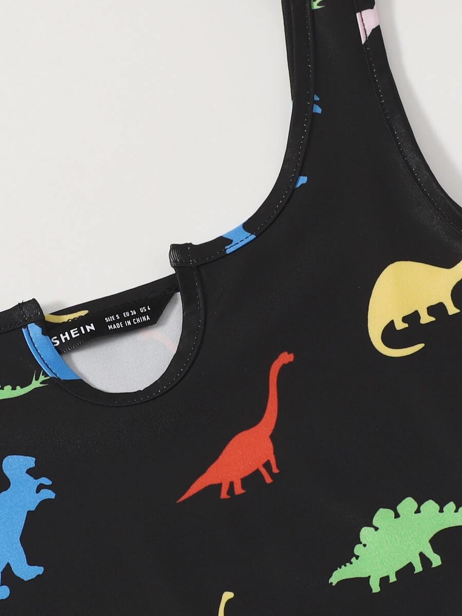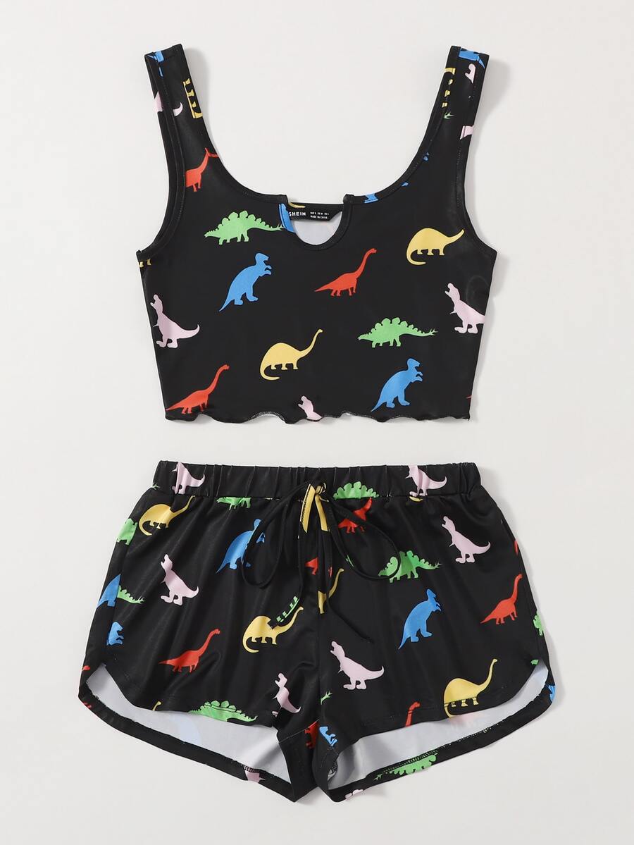 Conjunto top tank con estampado de dinosaurio bajo en forma de lechuga con shorts