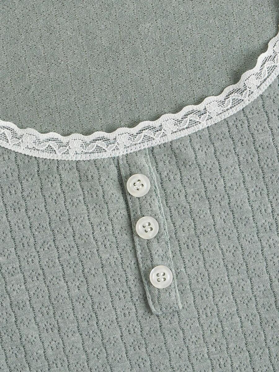 Camiseta ribete en forma de lechuga con encaje en contraste