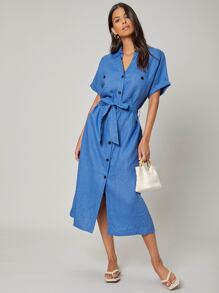 Vestido camisero con cinturón recto de lino