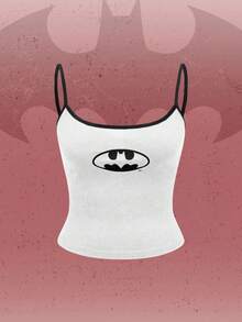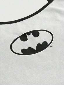 Batman X ROMWE Top corto con estampado de logo, estilo casual de calle