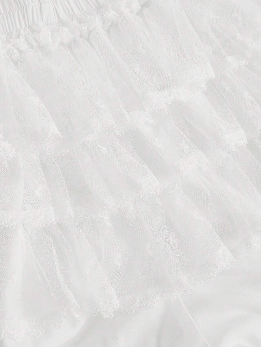 Goth Falda tipo pastel multicapa con lazo, shorts sólidos con diseño de calabaza de linterna gótica blanca con encaje y empalmes con lazo, vestido de dama de honor