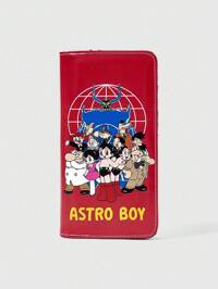 Astro Boy X ROMWE Cartera tipo billetera larga con múltiples ranuras para tarjetas, con decoración de cremallera con personajes de dibujos animados, letras y patrones de planeta, adecuada para uso diario