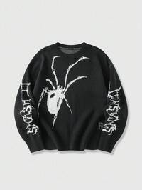 Street Life Jersey de manga larga de corte holgado con estampado de araña para hombre, invierno