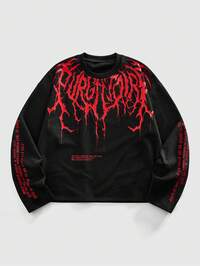 Goth Sudadera de manga larga con estampado de lema gótico para hombres