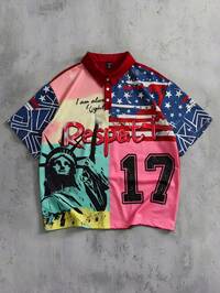 Polo de manga corta con estampado para hombre, estilo callejero retro