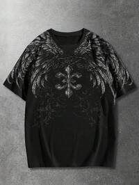 Goth Camiseta de manga corta suelta con estampado de alas, casual para hombre, verano