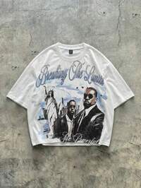 Street Life Camiseta holgada y corta con estampado para hombres de talla grande