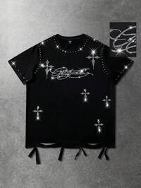 Street Life Camiseta de manga corta para hombre con diamantes brillantes, estilo sobredimensionado y hombros caídos con corte corto