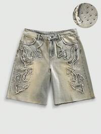 Pantalones cortos vaqueros casuales con decoración de strass y bolsillo parche para hombres