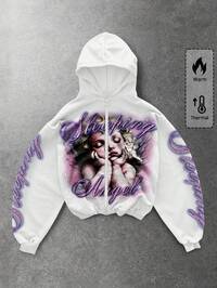 The Conjuring X ROMWE Sudadera con capucha con cremallera y gráfico de figura para hombres, adecuada para otoño/invierno