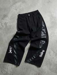 Goth Jeans holgados y acampanados de cuero con parches para hombres