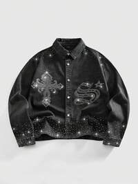 Chaqueta vaquera de solapa única con adorno de cruz de rhinestone para hombres