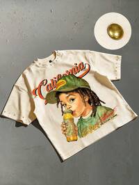 Street Life Camiseta casual de manga corta y cuello redondo con estampado de letras y personajes de dibujos animados para hombres