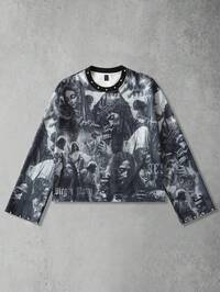 Betty Boop | ROMWE Sudadera holgada con gráfico de letras y números lavados para hombre
