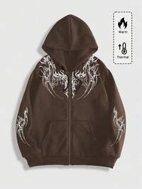 Goth Sudadera con capucha con cremallera y cordón de espinas con estampado gráfico para hombre, para otoño/invierno, de manga larga