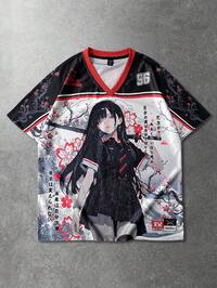 Anime Camiseta de manga corta con estampado de estilo japonés para hombre, adecuada para uso diario en primavera/verano