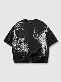 Street Life Camisa de manga corta holgada con botones delanteros y estampado gráfico para hombre