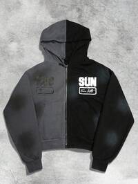 Street Life Sudadera con capucha con cremallera y estampado de eslogan lavado vintage para hombres