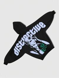 Sudadera con capucha y cremallera de manga larga para hombre con estampado de letras y figuras