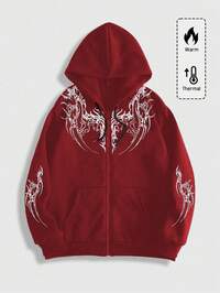 Goth Sudadera con capucha con cremallera, cordón y forro térmico con estampado gráfico para hombre, para otoño e invierno