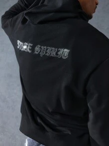 Goth Sudadera con capucha casual para hombres con bolsillo, de manga larga, con patrón de cruz de rhinestone negro